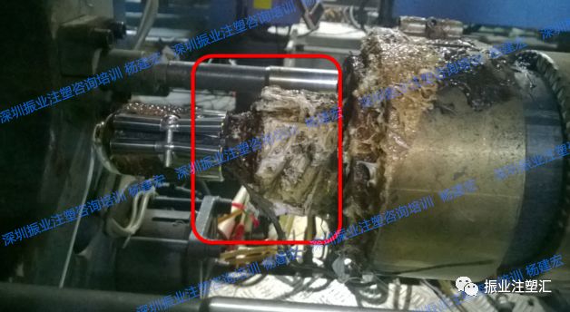 c) 熔胶参数设置不当,塑胶剪切摩擦力太大,过大的剪切力造成温度偏高;