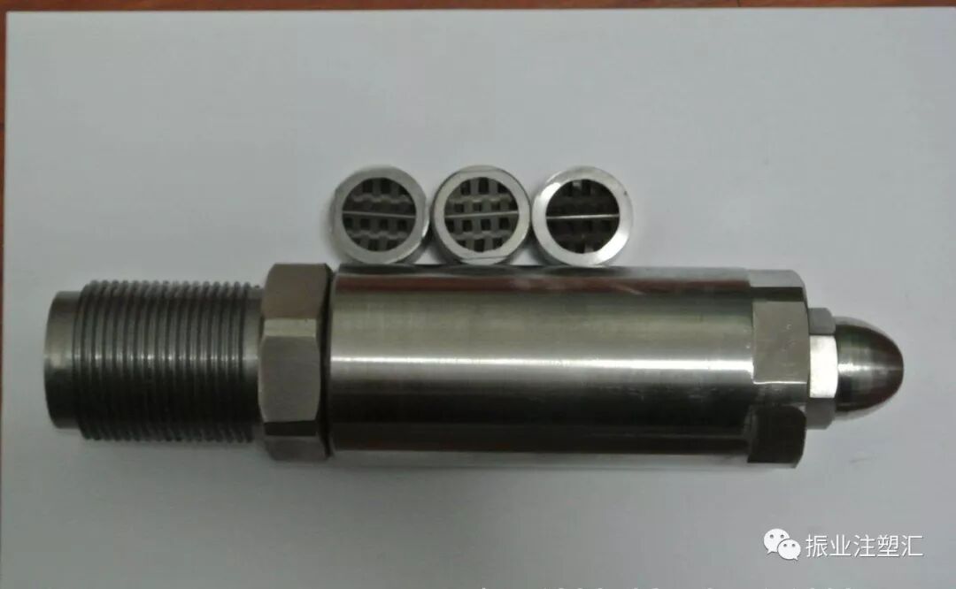 塑料的杂质可用延伸性射嘴的过滤器来清除,即熔融和塑料流过一条信道,这信道被镶件分隔成狭窄的空间。这些狭窄和间隙能去掉杂质并改善塑料的混合。
