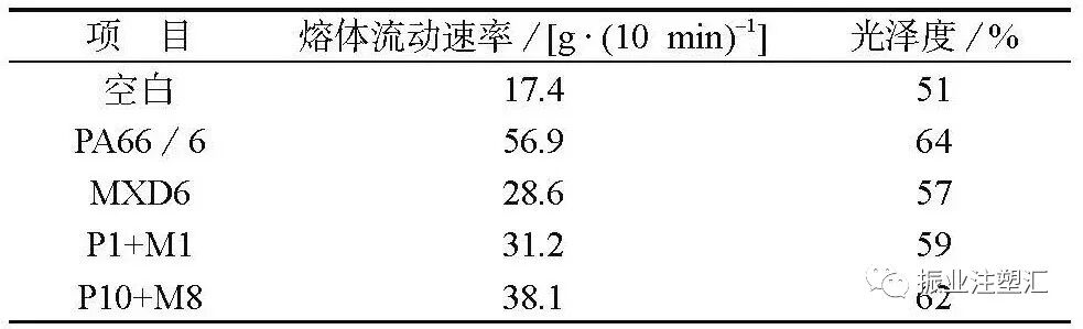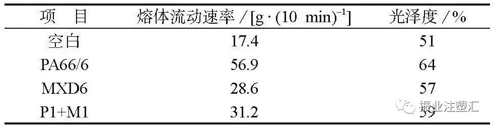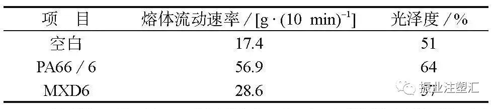 加入PA66/6的复合材料熔体流动速率和光泽度提升明显,提升幅度高于加入MXD6的复合材料。
